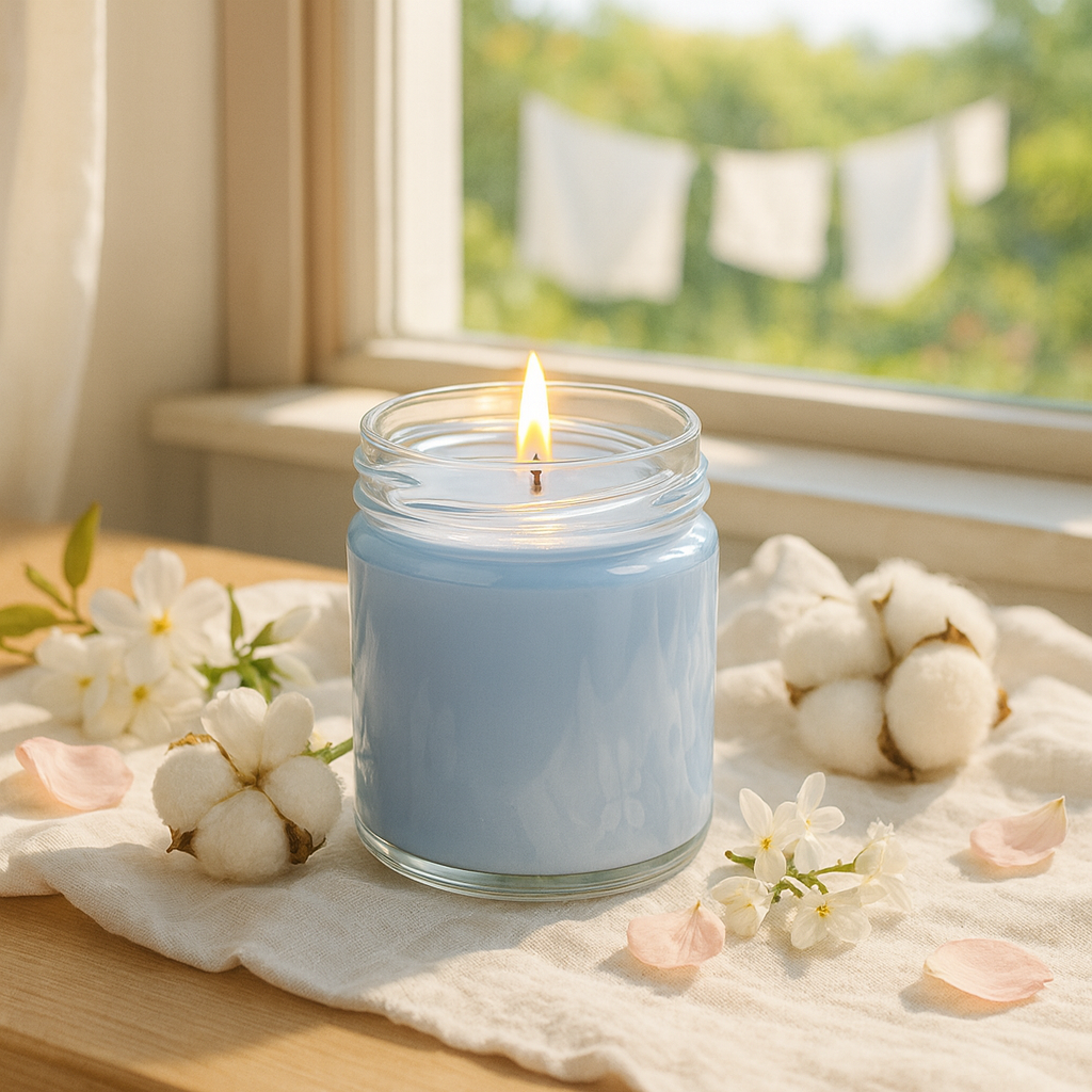 La bougie Les Draps du Vent évoque la légèreté d’un linge frais qui sèche au soleil, caressé par une brise douce. Les notes florales de rose, de fleur de coton et de jasmin apportent une sensation de fraîcheur propre et de confort. En fond, le musc et la fève tonka ajoutent une touche douce et légèrement gourmande.
